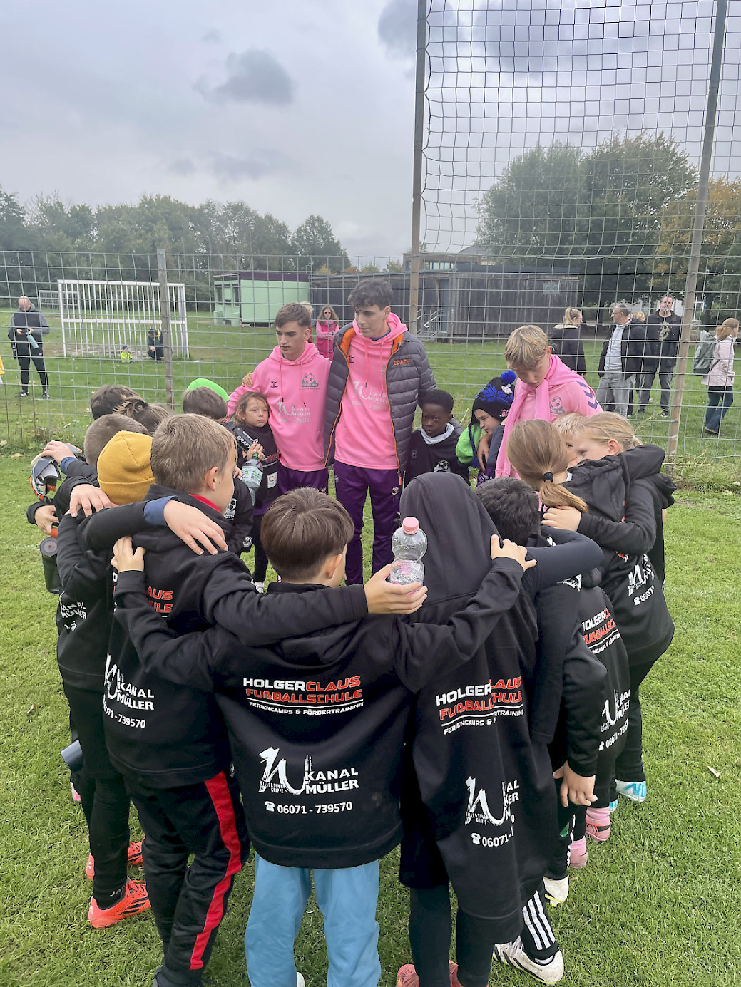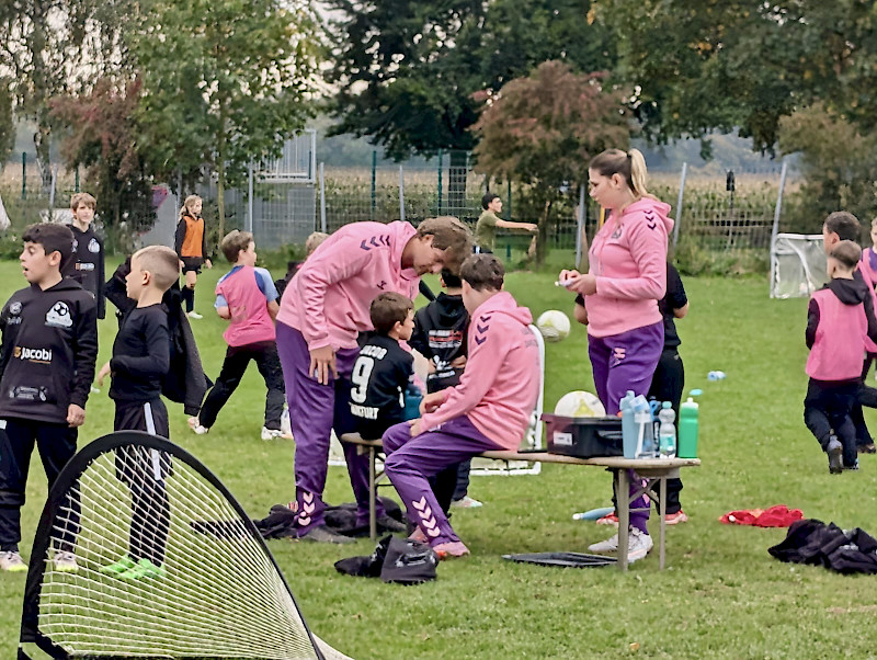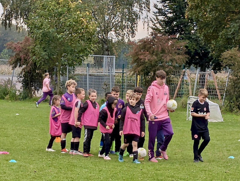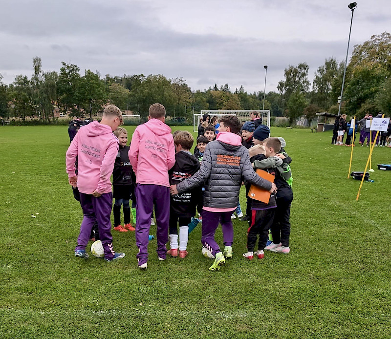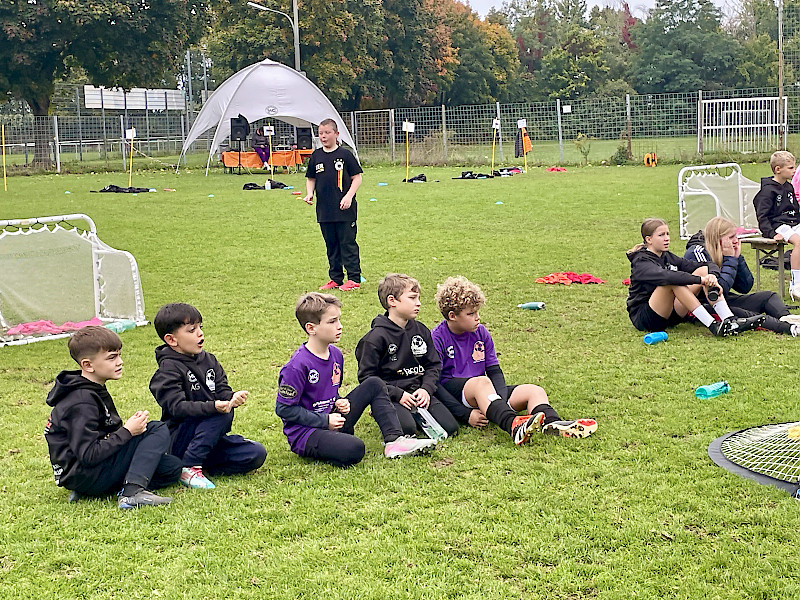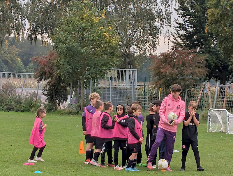 Wie auch im letzten Herbstcamp durften die in pink / lila gekleideten Trainer, die Kids mit ihren schwarzen Hoodies auf dem Platz willkommen heißen.