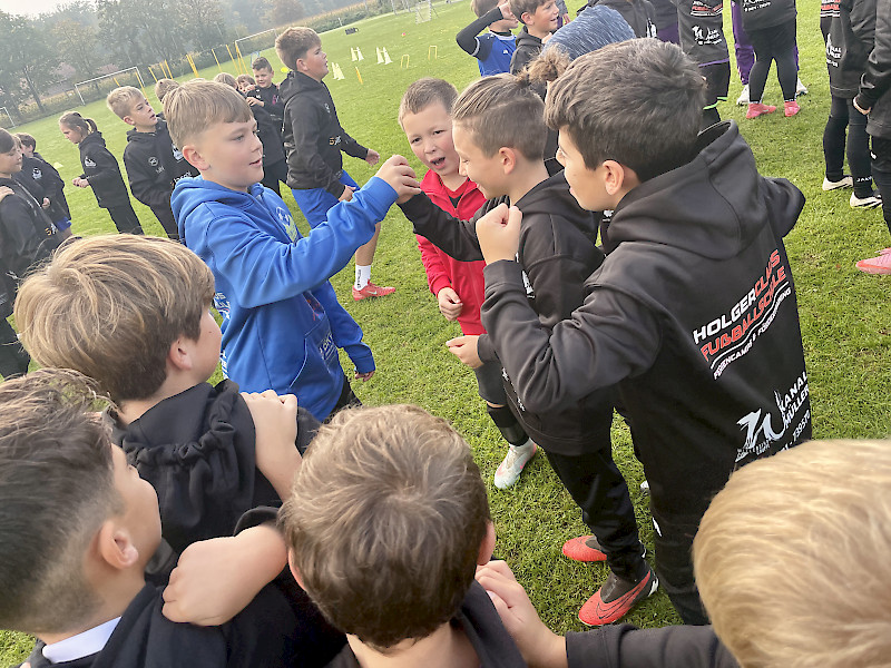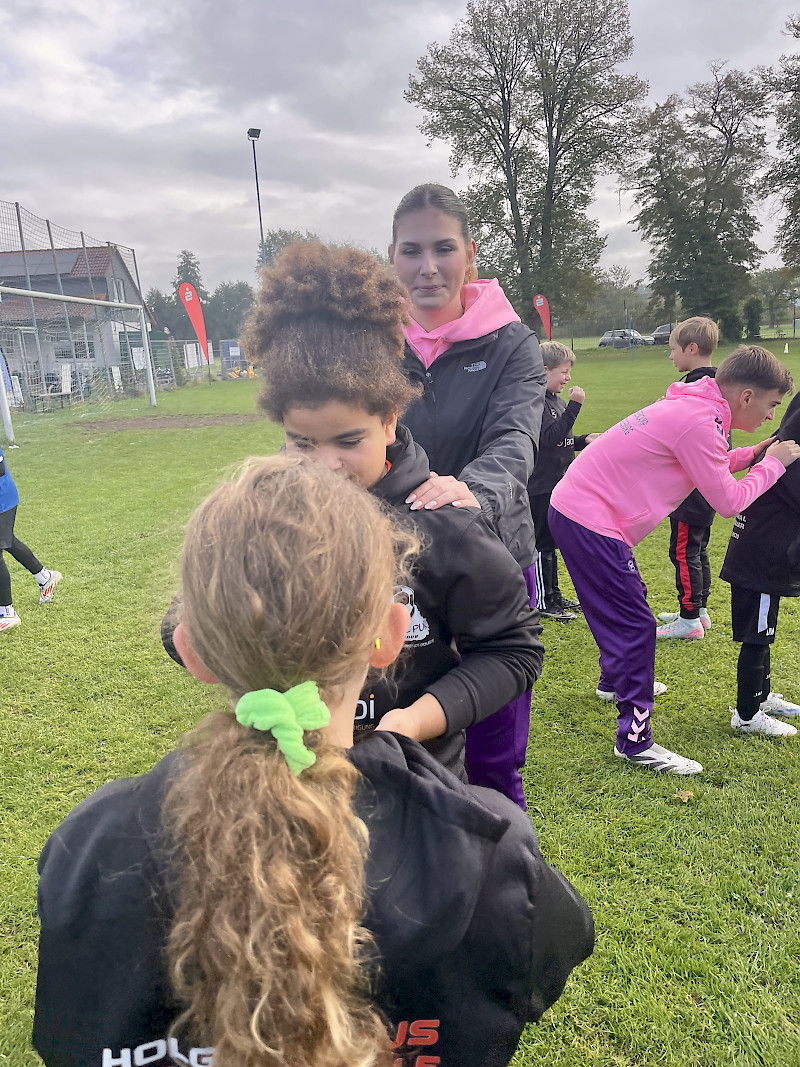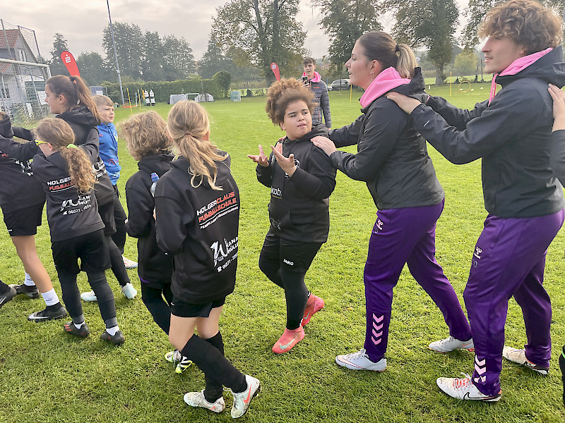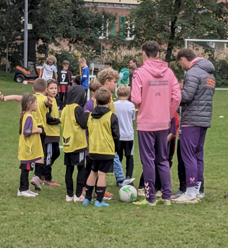 Wie auch im letzten Herbstcamp durften die in pink / lila gekleideten Trainer, die Kids mit ihren schwarzen Hoodies auf dem Platz willkommen heißen.