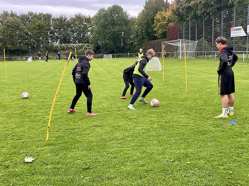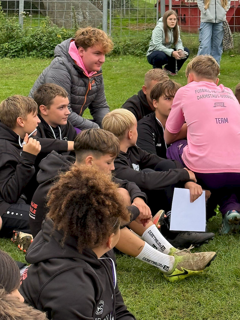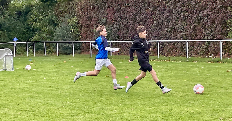 Aus den beiden ältesten Camp-Teams, Nick Woltemade und Michael Olisé, formten die Coaches Holger, Nils und Julian ein Team, das in 2x30 Minuten gegen einen guten Gegner in rot antreten konnte.