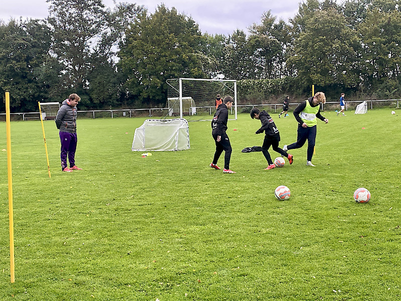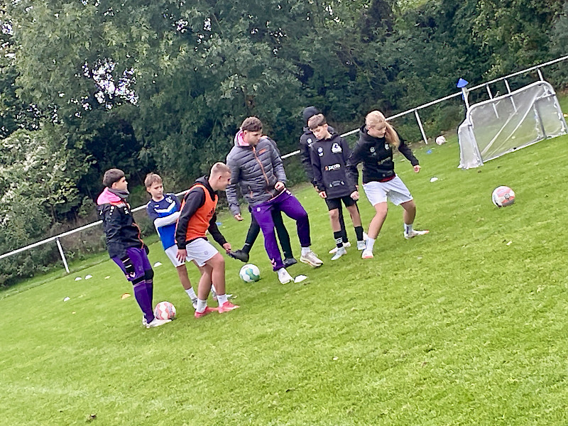 Ab Dienstag sogar noch komplettiert von unserem täglichen Warm-Up, das von Schnick-Schnack-Schnuck über Mathe-Aufgaben bis hin zu Fang- und Reaktionsspielen reichte, nahm die Fußballwoche richtig Fahrt auf.