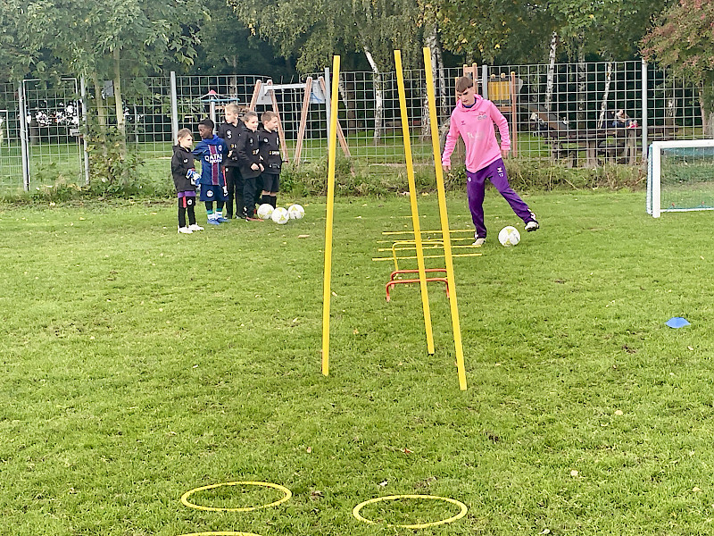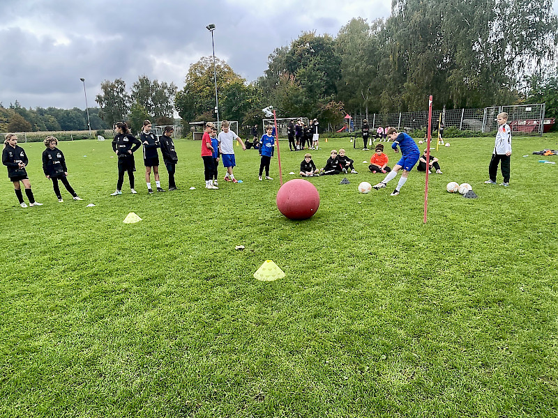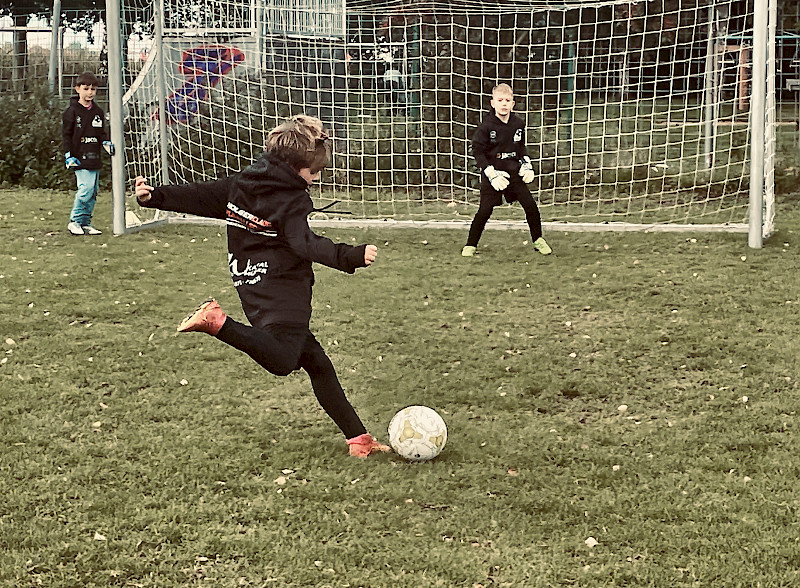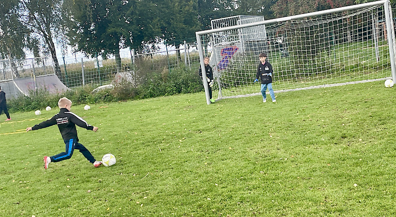 Auch die jungen Torhüter konnten sich ihre Handschuhe schnappen, denn Mattia und Hannah knallten die Bälle aufs Tor und ließen unsere Nachwuchstorhüter fliegen.