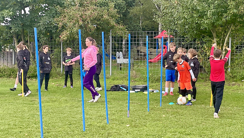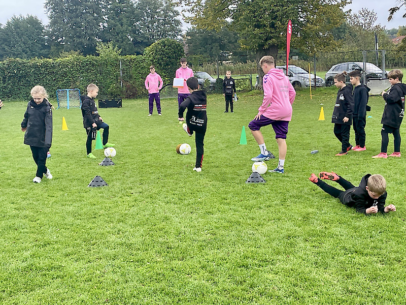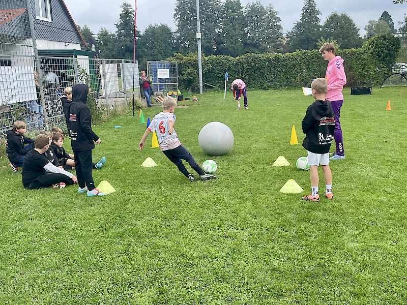 Währenddessen ging es auf dem Platz heiter weiter! Fußballcamp-Abzeichen stand auf dem Programm.