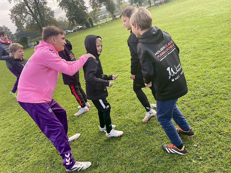 Und wie es ein guter Coach macht, zeigte er sich wie immer auch regelmäßig mit Fußballschuhen auf dem Platz.
