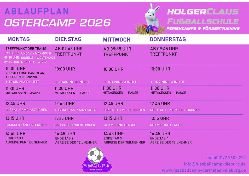 Mit dem Ablaufplan unseres Oster-Fußballcamps beim SV Sickenhofen!