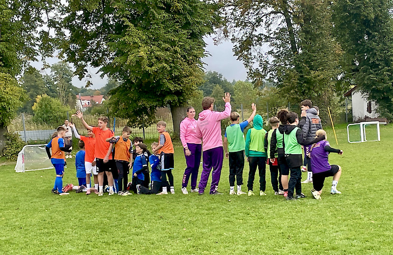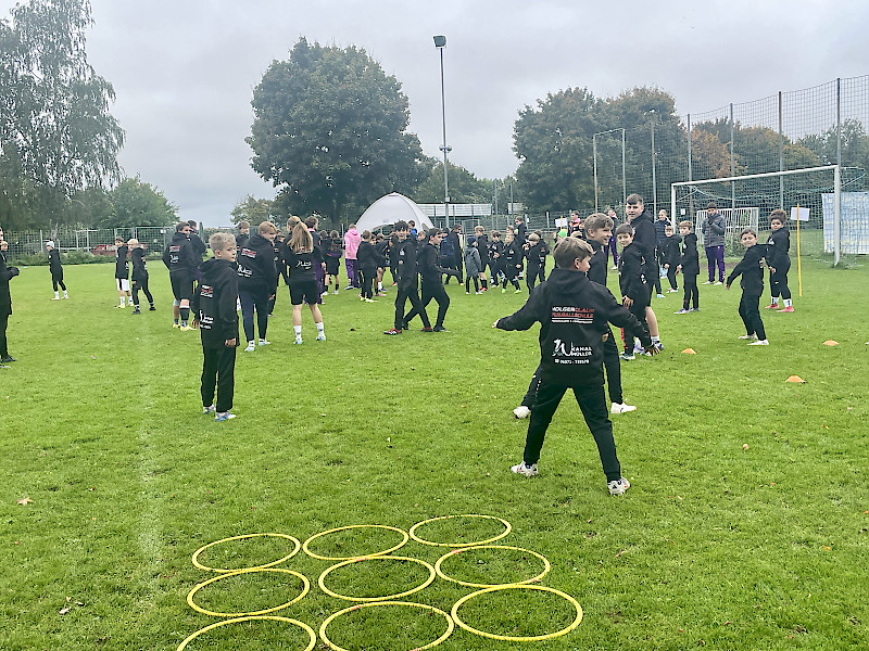 Wie auch im letzten Herbstcamp durften die in pink / lila gekleideten Trainer, die Kids mit ihren schwarzen Hoodies auf dem Platz willkommen heißen.