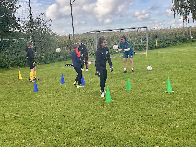 Auch die jungen Torhüter konnten sich ihre Handschuhe schnappen, denn Mattia und Hannah knallten die Bälle aufs Tor und ließen unsere Nachwuchstorhüter fliegen.
