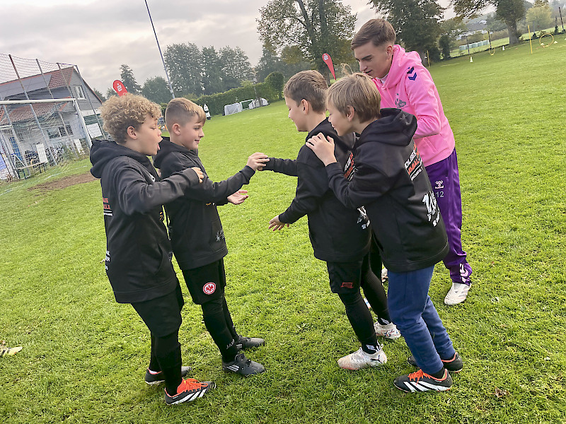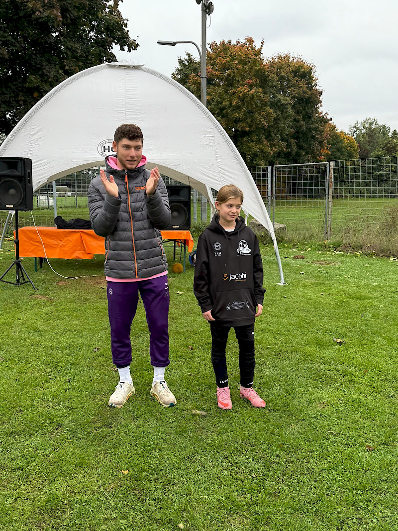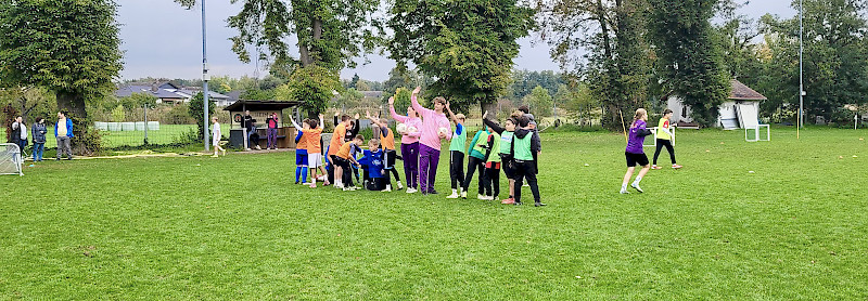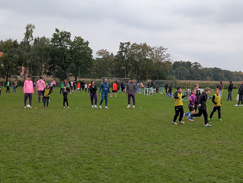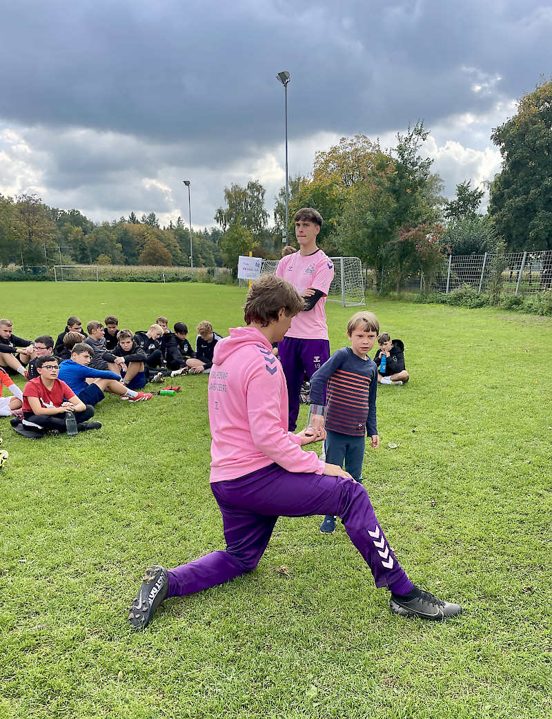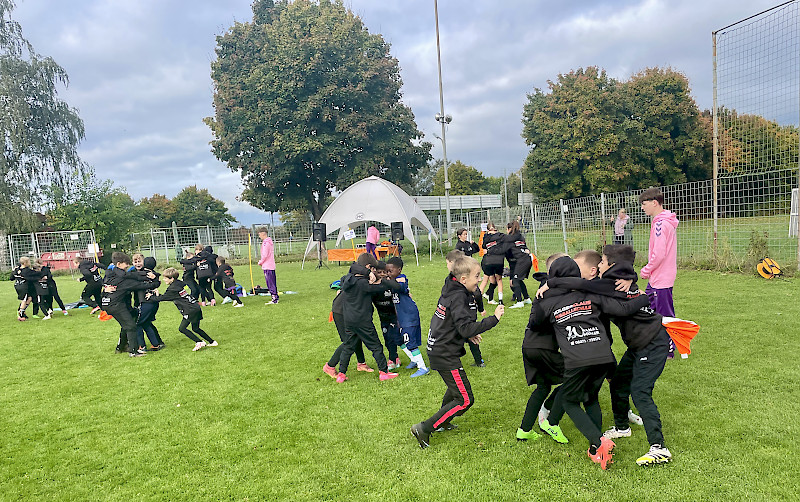 Wie auch im letzten Herbstcamp durften die in pink / lila gekleideten Trainer, die Kids mit ihren schwarzen Hoodies auf dem Platz willkommen heißen.