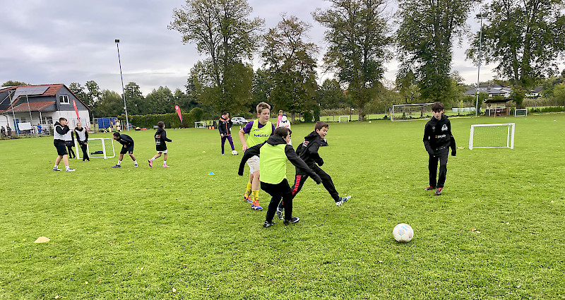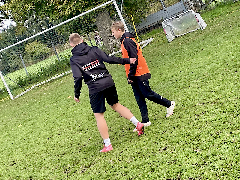 Ab Dienstag sogar noch komplettiert von unserem täglichen Warm-Up, das von Schnick-Schnack-Schnuck über Mathe-Aufgaben bis hin zu Fang- und Reaktionsspielen reichte, nahm die Fußballwoche richtig Fahrt auf.