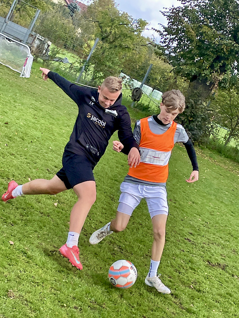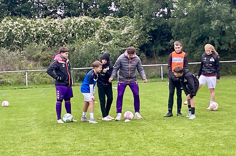 Und wie es ein guter Coach macht, zeigte er sich wie immer auch regelmäßig mit Fußballschuhen auf dem Platz.