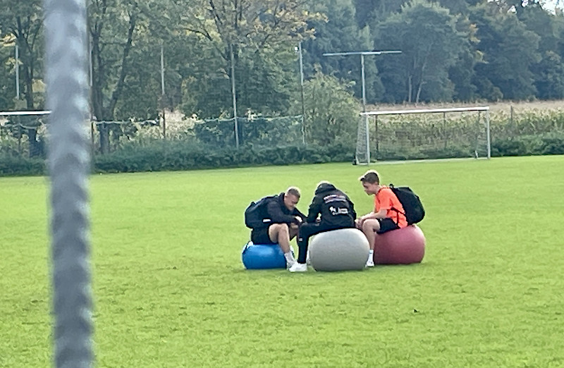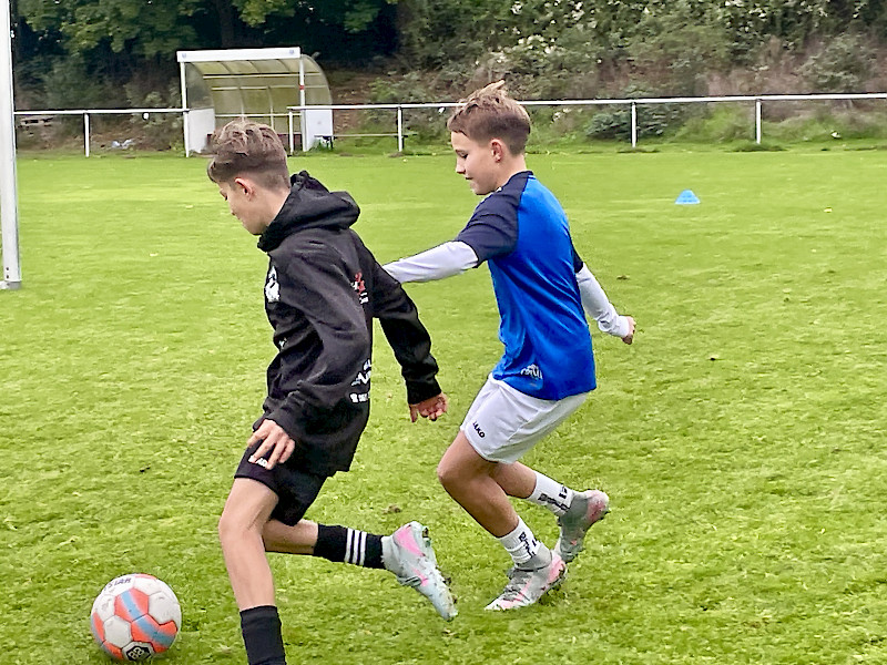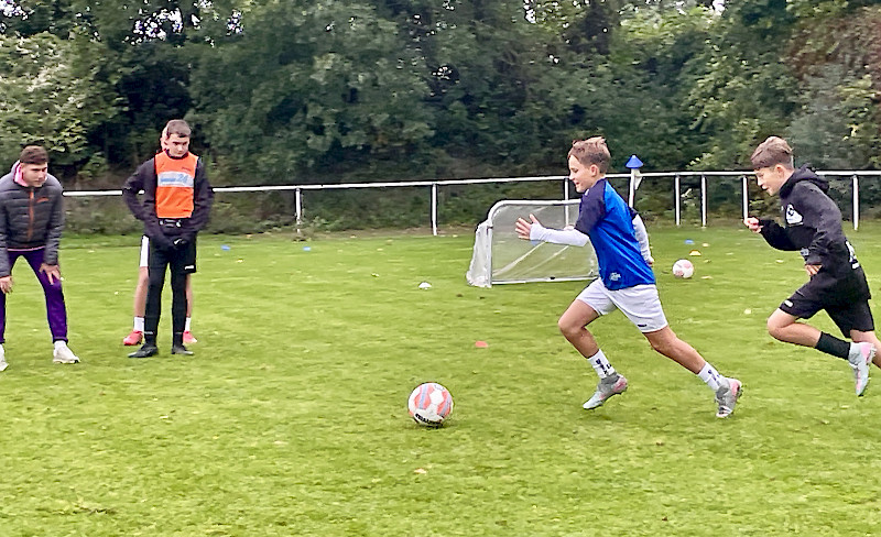 Aus den beiden ältesten Camp-Teams, Nick Woltemade und Michael Olisé, formten die Coaches Holger, Nils und Julian ein Team, das in 2x30 Minuten gegen einen guten Gegner in rot antreten konnte.