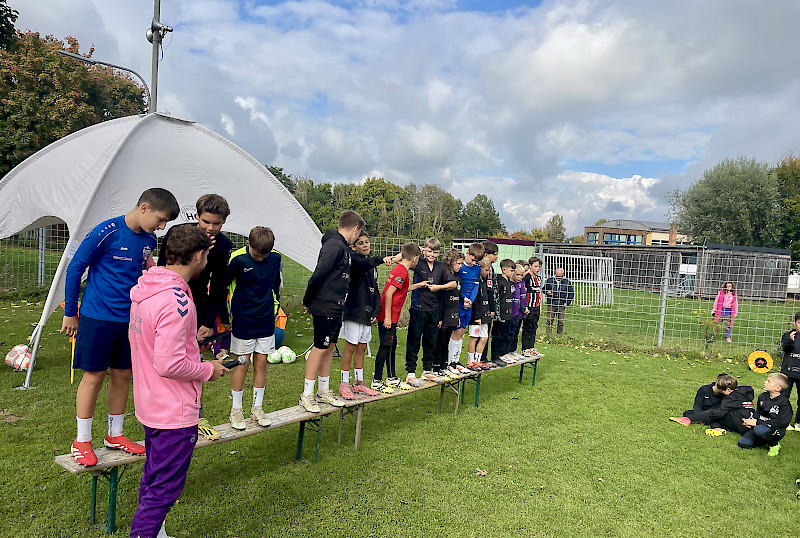 Nach der Mittagspause wurden die Kids als kleinen Einstieg in den Nachmittag in ihrem fußballerischen Können, ihren technischen Fertigkeiten und ihrer Geschicklichkeit getestet.