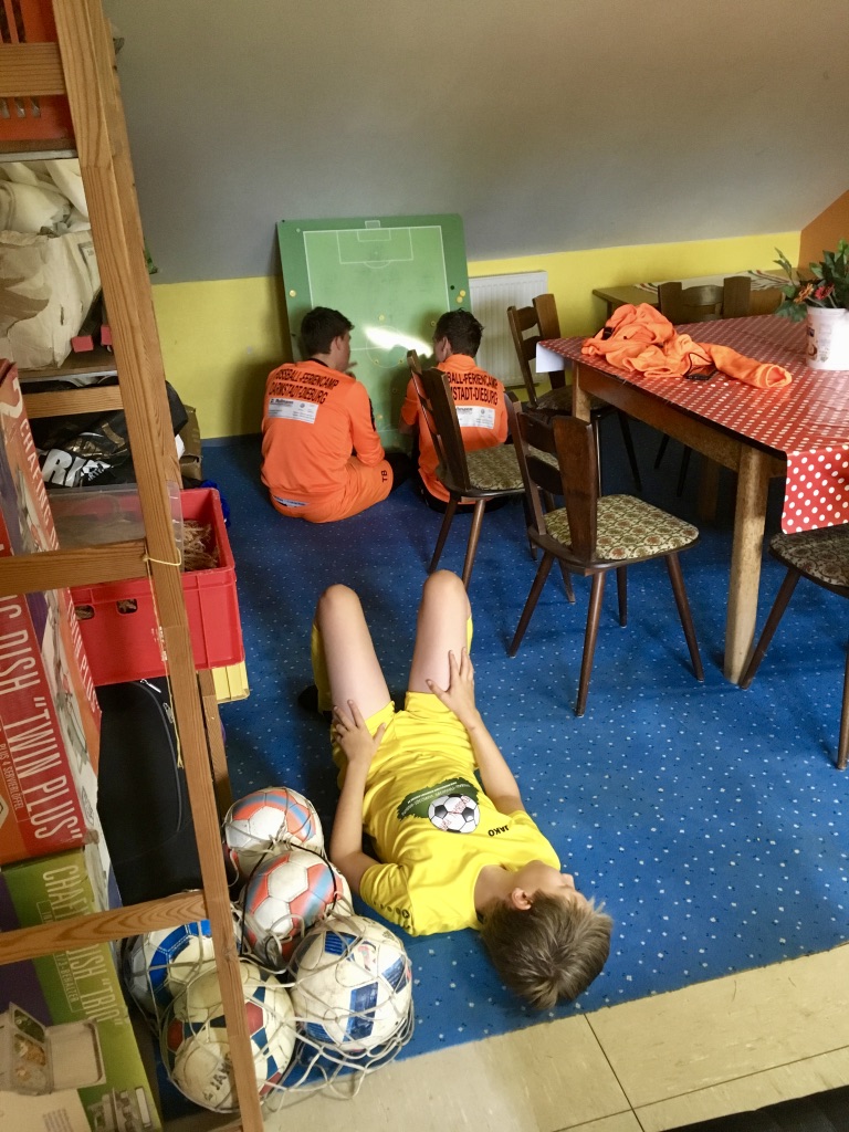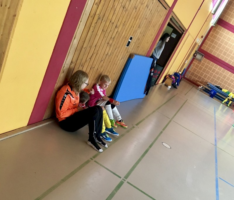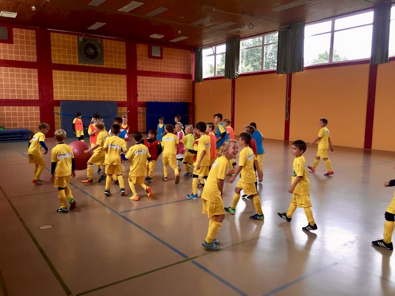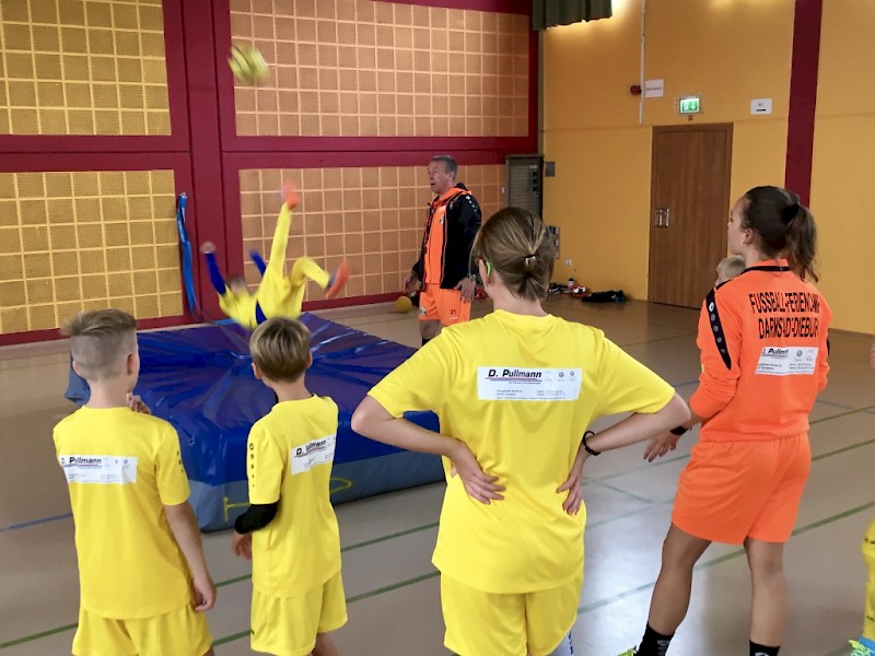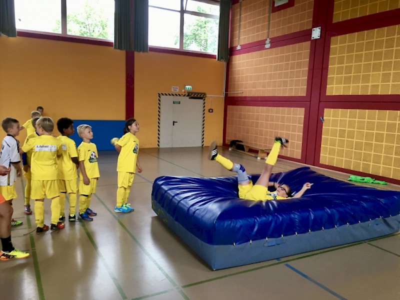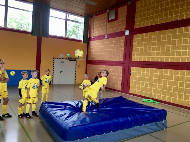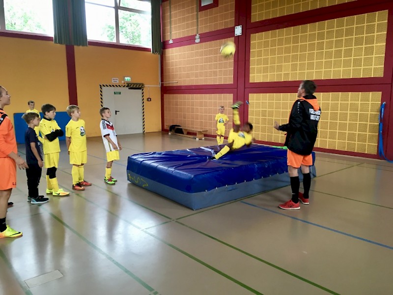 ..oder beim Flugkopfball auf der Weichmatte beim Hallentraining. Wir hatten ja schließlich gegen den Regen Plan 'B' - die Halle!