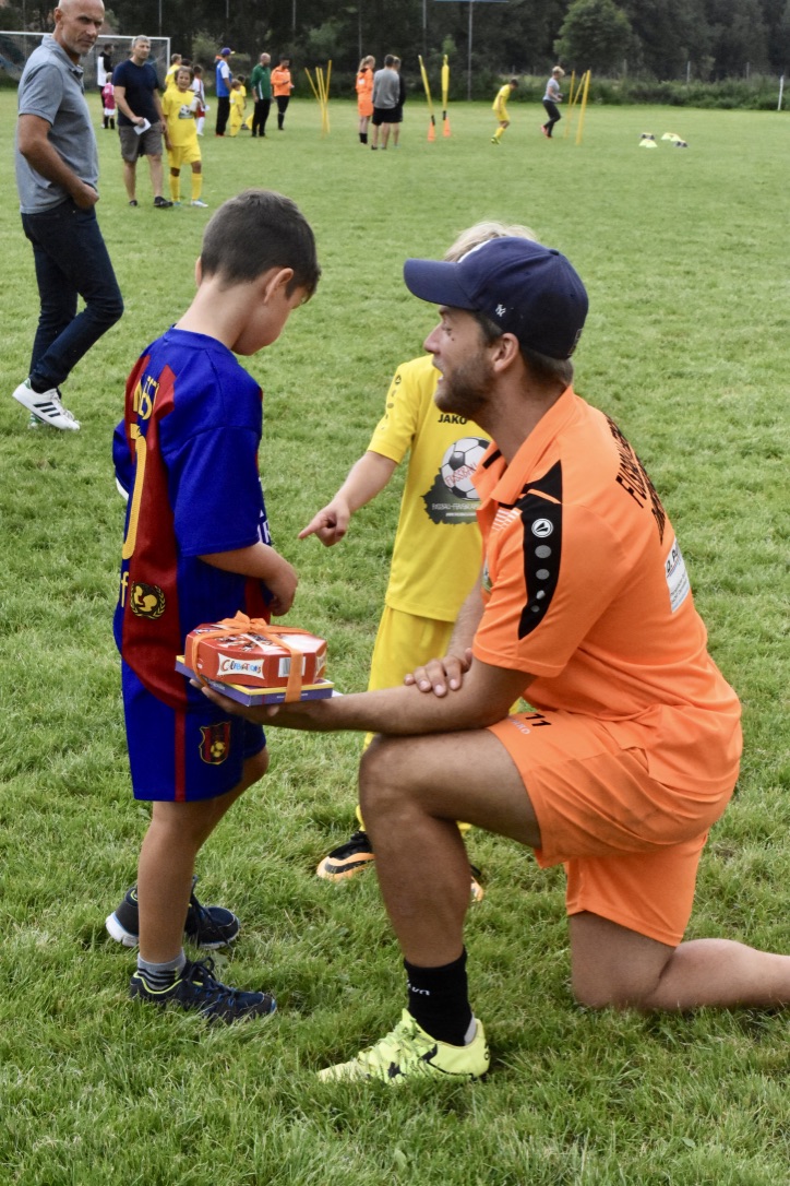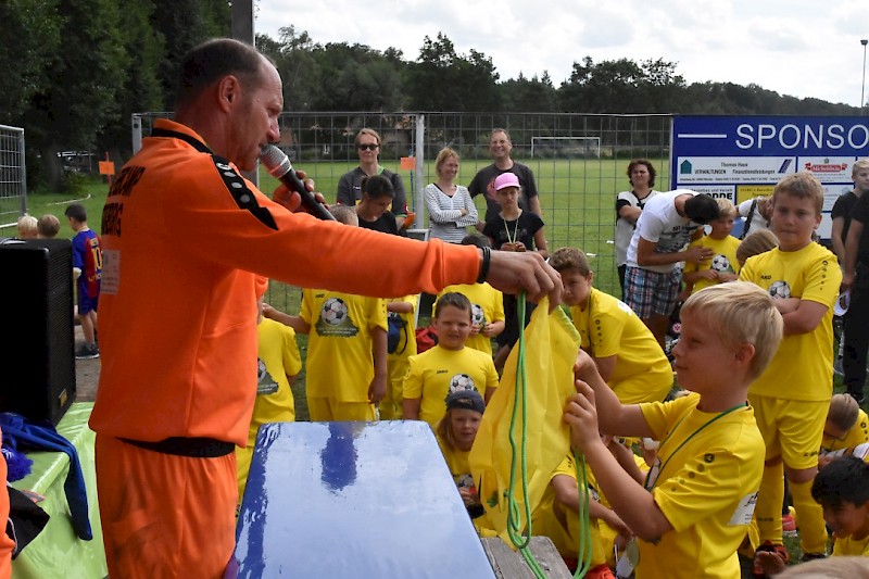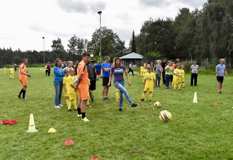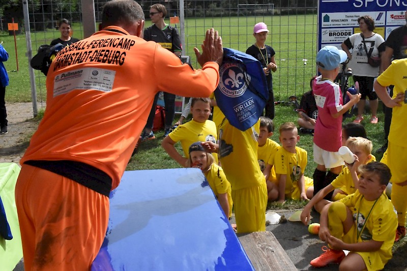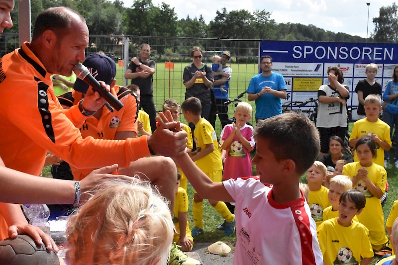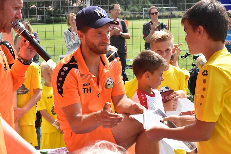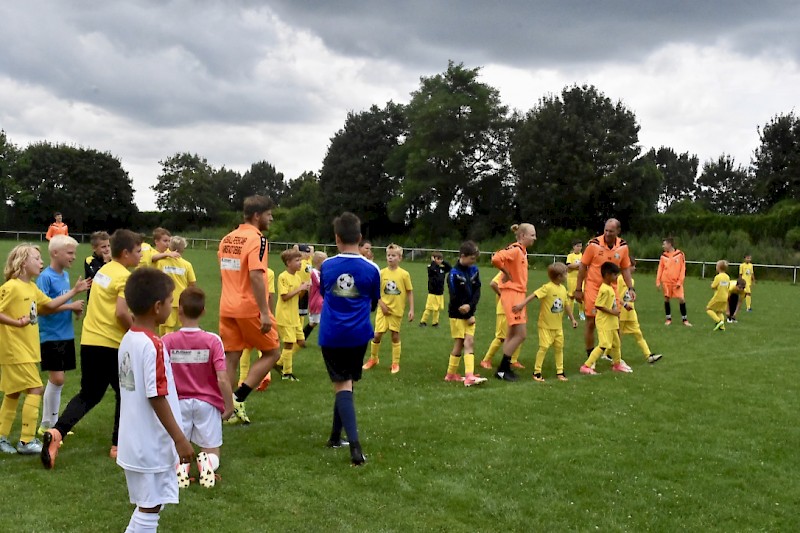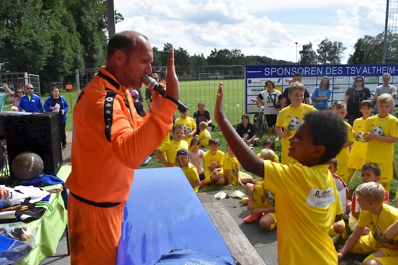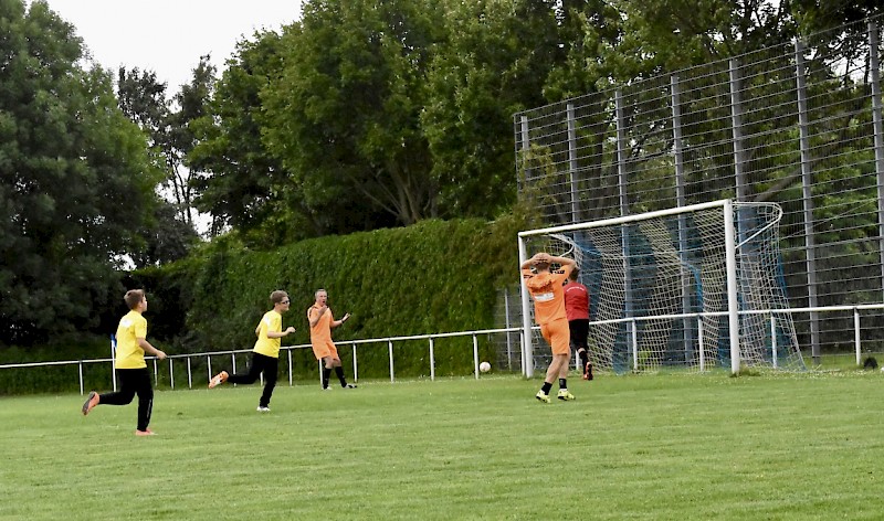 und erst recht bei einem der Highlights der Woche aus der Sicht unserer kleinen Camp-Teilnehmer: das große Spiel der Trainer gegen ALLE Kinder auf dem Hauptfeld des TSV..