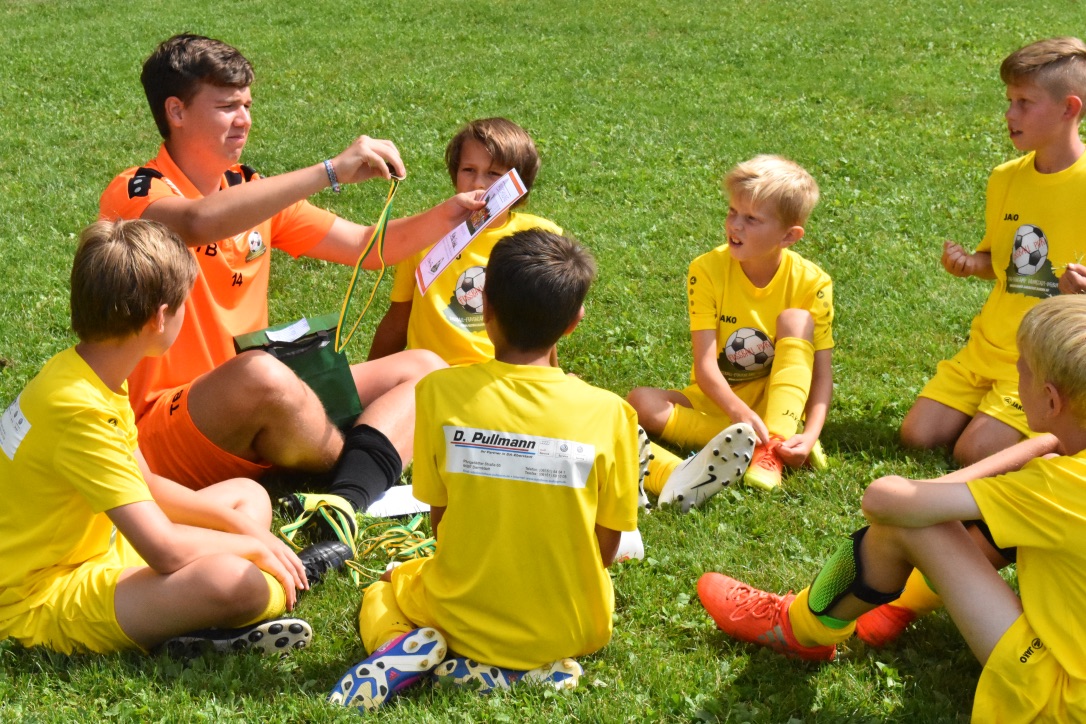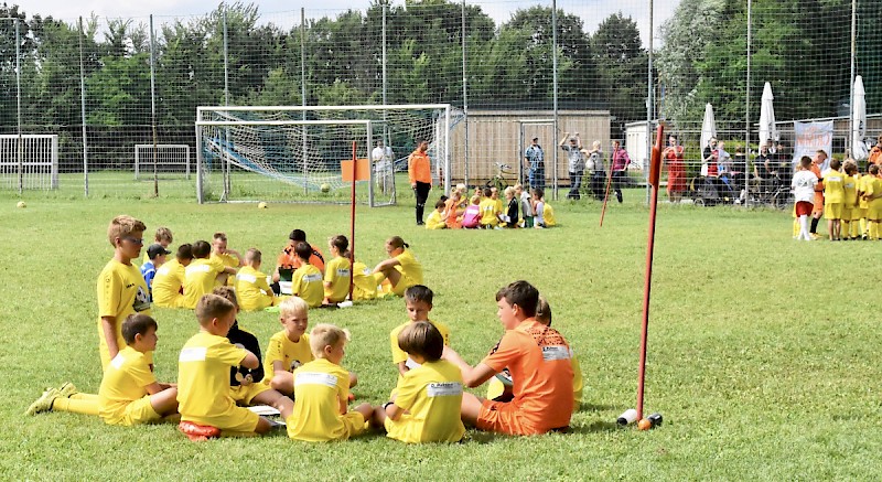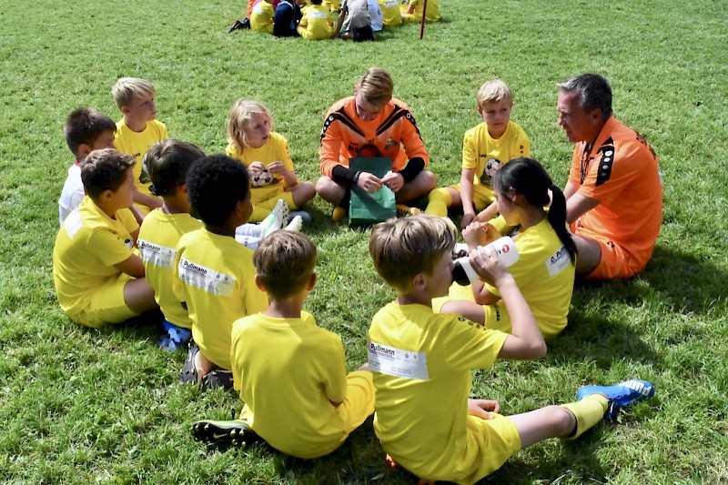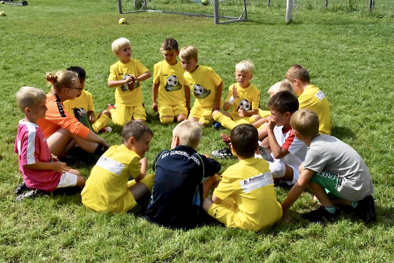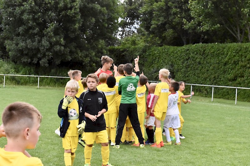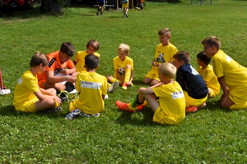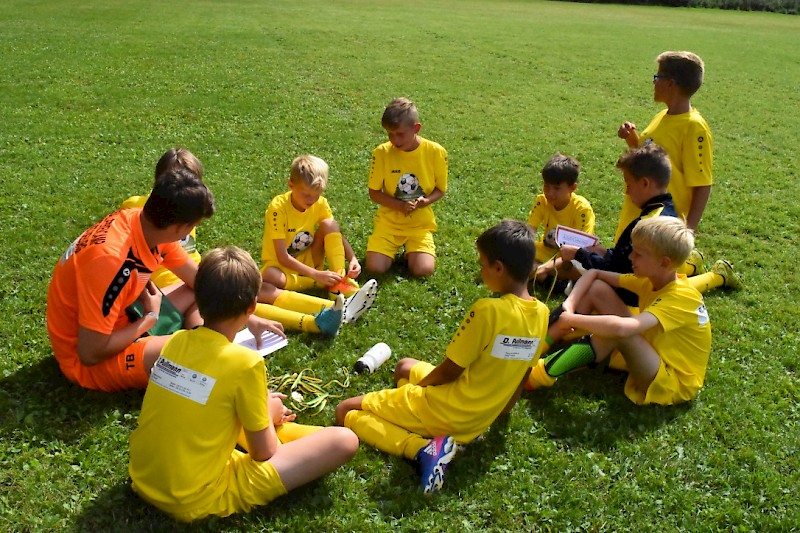 Bei der Medaillen/-und Urkundenübergabe zogen sich die Trainer mit den Kids mal zurück, und gaben ihnen auch noch mal einen kurzen Rückblick über die Fussballwoche....