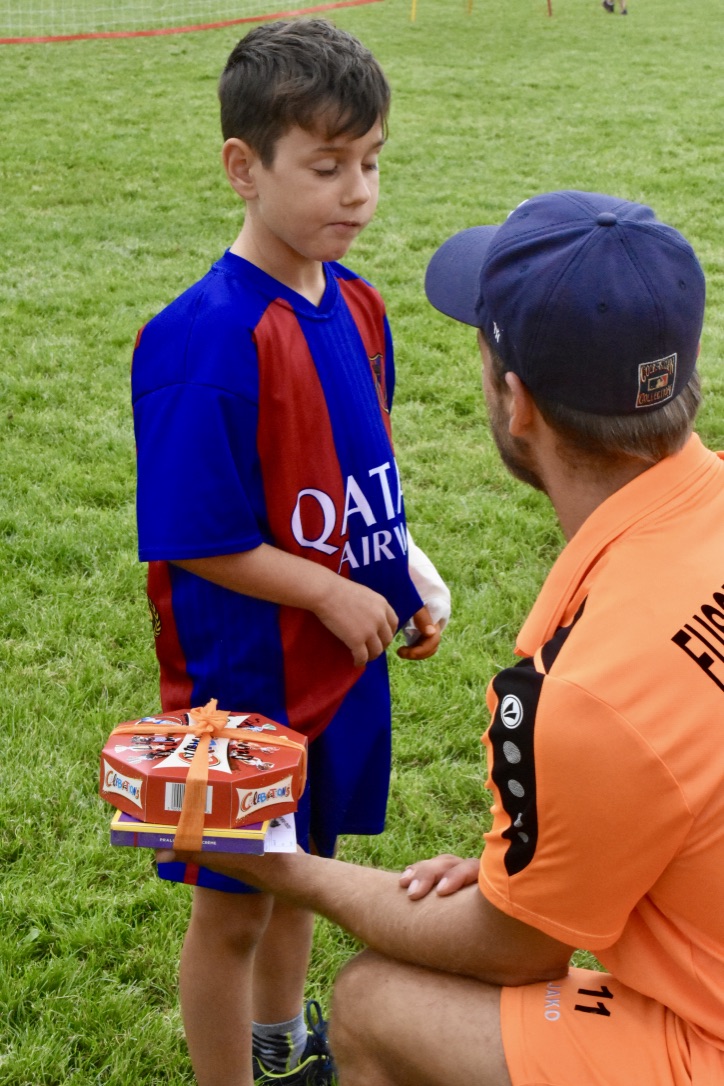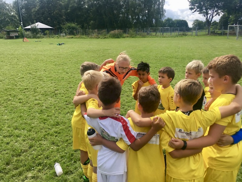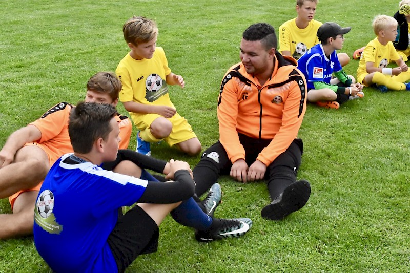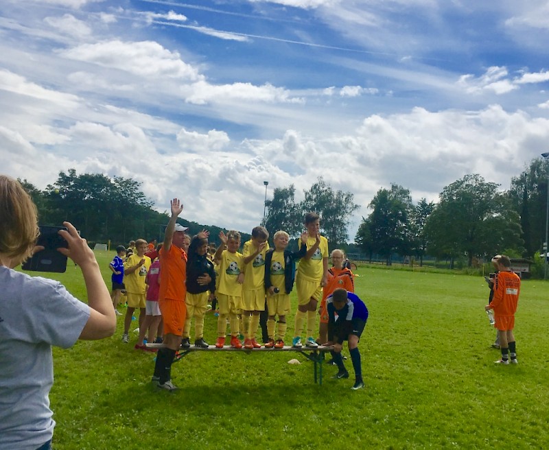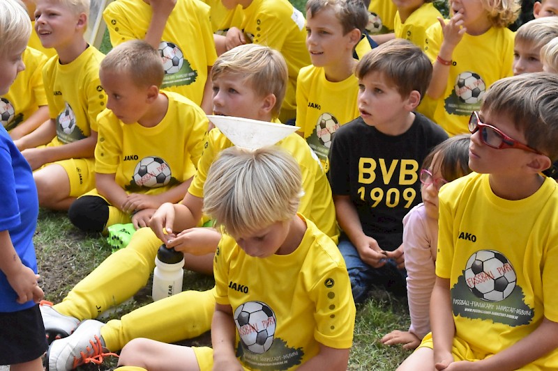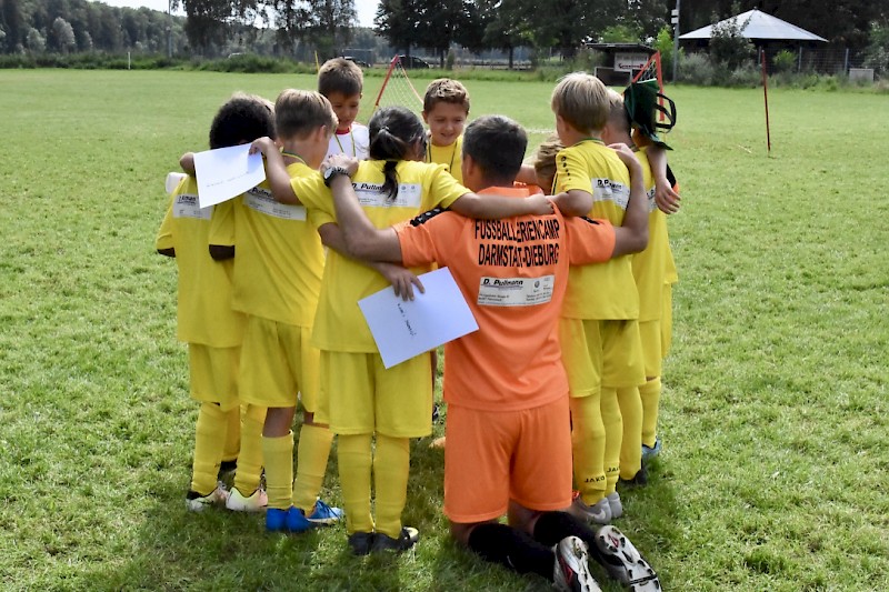 Bei der Medaillen/-und Urkundenübergabe zogen sich die Trainer mit den Kids mal zurück, und gaben ihnen auch noch mal einen kurzen Rückblick über die Fussballwoche....