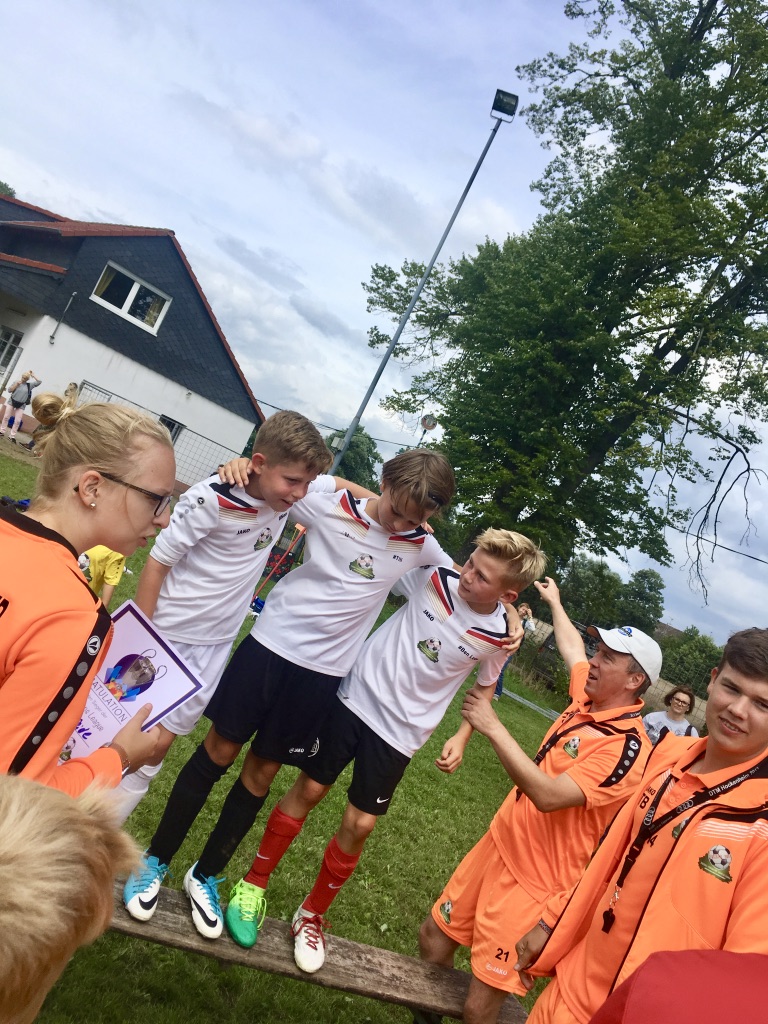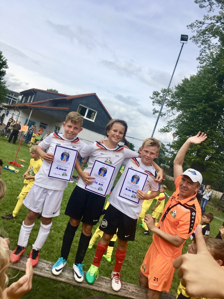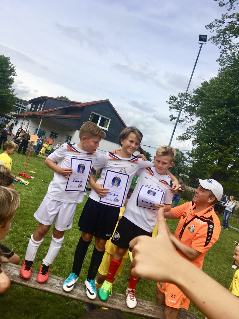 beim Einlauf der Champions-League-Sieger im ältesten Jahrgang..v.l. Neo Sch., Till S., und Ben-Luca H...die stolz ihre