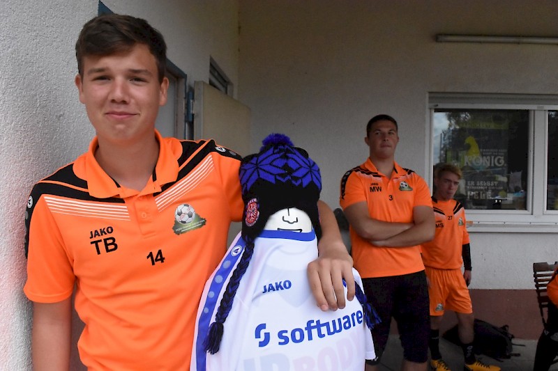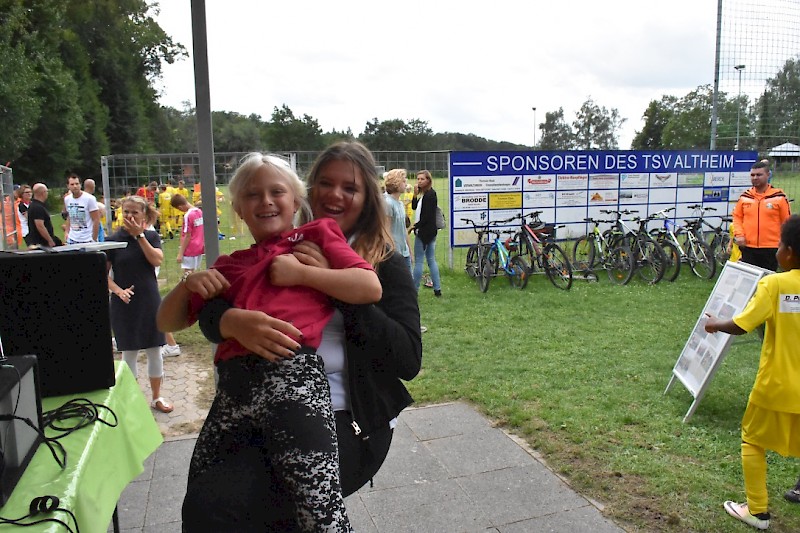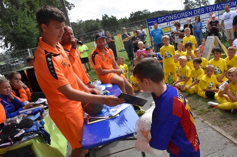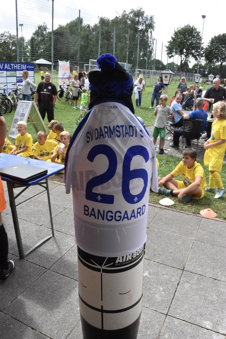 Die Tobola mit super Preisen, hier Moritz mit dem Hauptgewinn: einem Trikot des aktuellen Lilien/-und Dänemarks U-21 Nationalspielers P. Banggaard..
